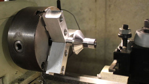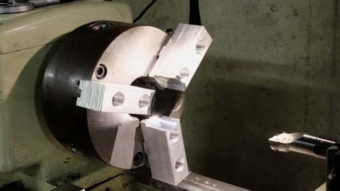 this was only possible by using soft jaws in the chuck. These are jaws I made from rectangular bar, and it's certainly not worth the time to make then yourself. They are inexpensive enough to buy.