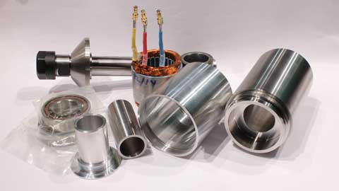 These are the parts going into this spindle. A few parts are not in the photo. Most notably, the bearing clamp ring is missing.