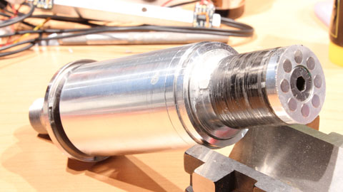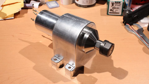 It uses three angular contact high speed spindle bearings and the chosen motor should allow up to 30,000 RPM. I've been using an old grinding spindle and this will be a
