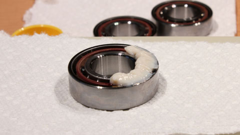 0.9 gram of lubricant was packed into each bearing.