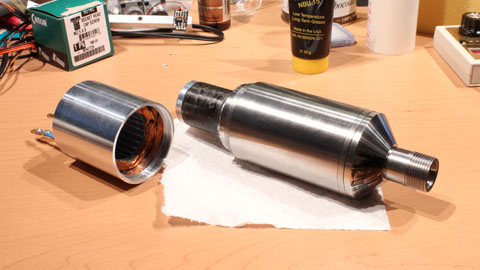 The motor stator threads on to the body. It only needs a motor cover that will have a fitting for compressed air to provide some cooling air and potentinally the hall sensors if needed. It runs very smoothly