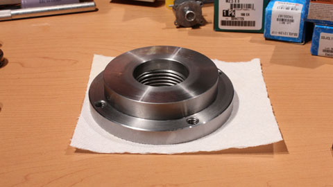 complete prior to final sizing of the bearing bore. I thought my bore guage could measure the 42mm bore, but it only reached 1.5". After a new bore gage was acquired, the bearing bore was turned