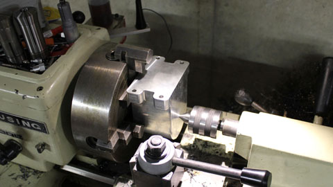 This is a pseudo action photo of tunring the jaws. A small round is captured in the master jaws and the jaws are turned to size. Unless you have a three point bore guage use the
