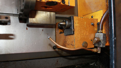 | The tail stock. This machine was equipped with a pneumatic tail stock. There are some limit switches to tell the control of it's position. I will be including it in the conversion. | |