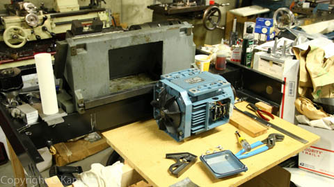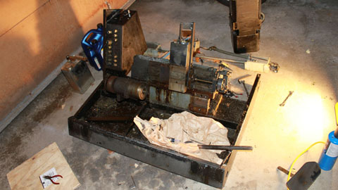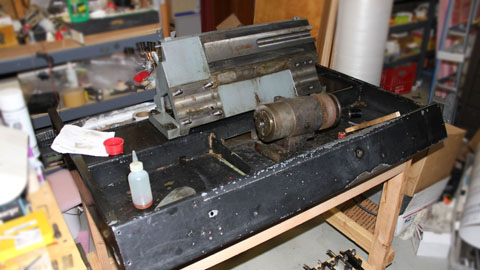 Jan. 5, 2012 The bare lathe bed and chip pan. There a quite a few panels, cables, etc., to remove to get to this point. I was concerned about removing the headstock to clean the bed casting,