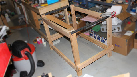 March 23, 2013 This project has been on hold for a while now and I'm finally able to put some time in on it. I built a simple wooden stand for it to get going. The stand will house drawers and the PC to operate it. The sides will get covered to add rigidity to the structure. It's not ideal, but I don't weld and can't spend the money right now. |