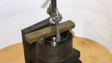 November 25, 2013 After a long break this project is moving agian. The last thing I did was to clean the parts and begin reassembling the spindle. I heated an inner race and quickly slipped it onto the spindle shaft. Approximately 1 second after the bearing grabbed tight I realized the bearing cover was not inplace. The bearing cover must be over the spindle prior to installing the bearing because the cover won't fit over it. This caused all sorts of grief as the bearing has only ~1mm of clearance to a large shoulder. After checking with people and places, I ended up making parts to pull the bearing myself.