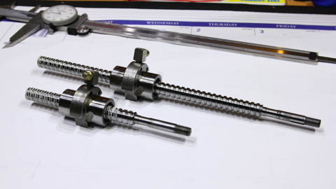 November 11, 2014 The ball screws showed signs of wear. The X axis was acceptable, but Z had obvious play. I measured the balls best I could in a Mitutoyo digital mic and ordered new balls slighlty larger. 1-2 ten thousandts of an inch makes a big difference so usually you order several sizes when reballing. For X, I ordered virtually the same as the old balls measured (old 2.381mm, new 2.38125mm or 3/32"). For Z, I purchased two sizes slightly larger. The old balls were 2.358mm, new 2.37269 or .093413". I didn't end up using the .093616" balls. I've had experience reassembling several ball screws lately, so this was an easy job and took maybe 15 minutes total. Keep your work area clean and use clean grease to hold the balls in the tracks. Use a filler tube just smaller than the minor diameter to keep the balls in the tracks while inserting the screw. Pay attention to the orientation of the grease fiting on the Z axis when installing the ball nut. It should point up when installed in the lathe. This is not critical for the X axis as it will be accesible either way. |