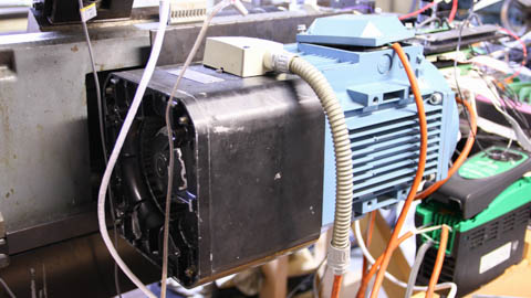 The old spindle motor blower was saved and with a little modification installed on the new spindle motor. The blower motor is also three phase and will be driven by a small VFD. The SK Commander series VFD has PID capability and with a tempeature sensor should maintain motor temperature without additional signal input. |